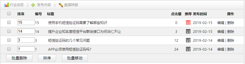 【排序】:可输入数字,一般为从大到小排列,数字大的前台页面此条内容显示在前面,设置完成后点击【排序】按钮即可。