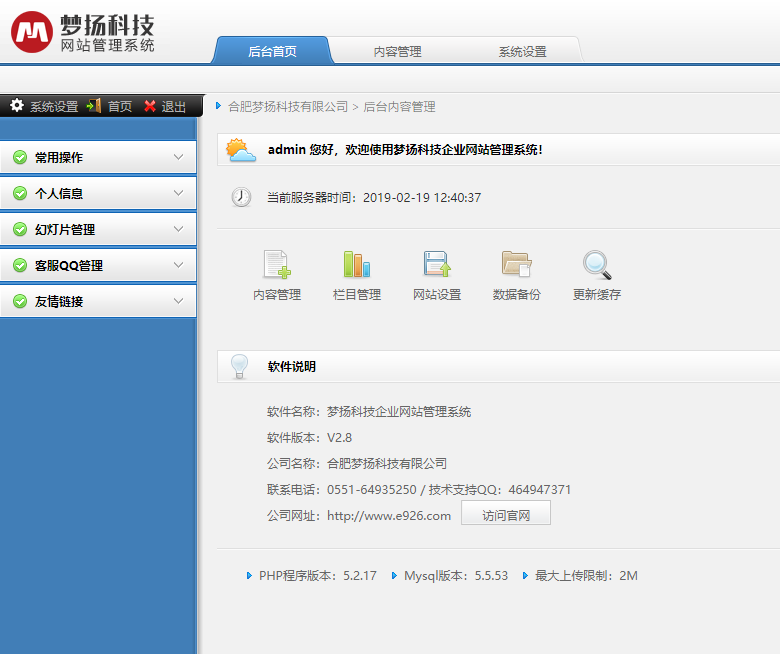 梦扬科技企业网站管理系统(MYCMS)是合肥梦扬科技有限公司旗下的一款基于PHP+MYSQL技术开发,专门为中小企业定制的具有操作简单、易于优化、安全稳定等特点的网站内容管理系统。